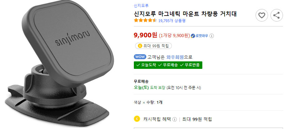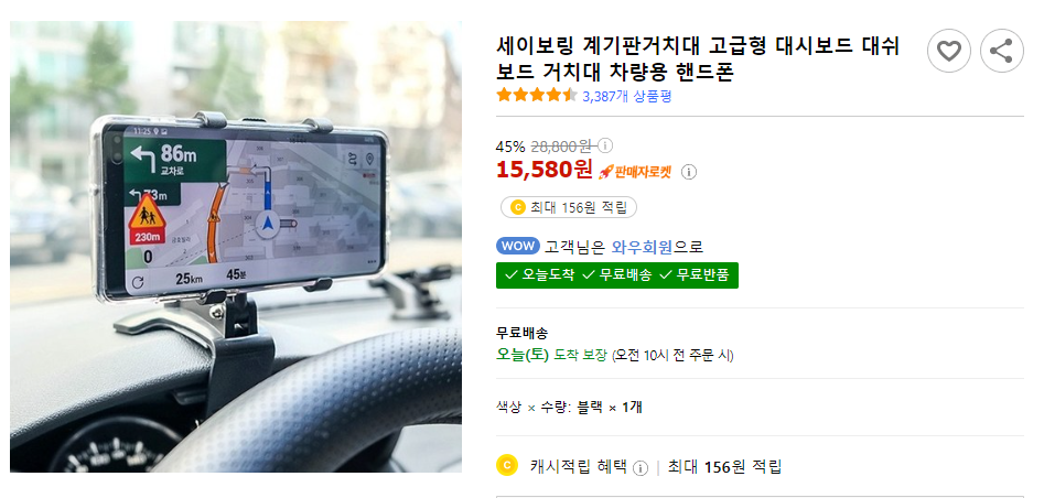 아무래도 지프 랭글러를 모는 사람이 적기 때문에 이렇게 좋은 제품이 품절일 수가 있구나 싶지만, 일단 내가 원하는 블랙박스를 위해 카메라가 90도로 세워져야 하고, 운전석에서 시야를 방해하지 않으며 더울 경우 휴대폰이 뜨거워져서 멈출 수 있기 때문에 앞유리에 가깝지 않아야 하는 모든 기능이 있었기에 고민도 하지 않고 구입하였다.