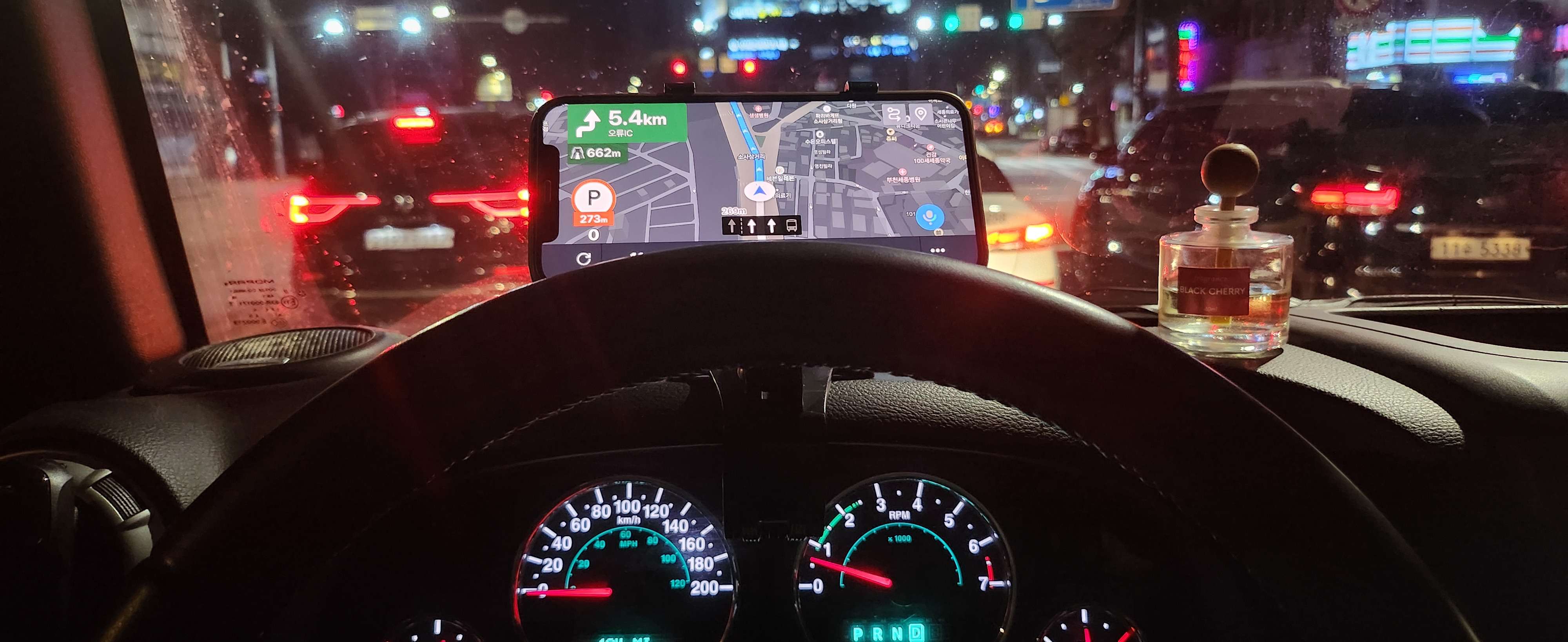 최종 모습을 위와 같이 정말 이쁘게 휴대폰이 고정된 것을 볼 수 있다. 누구는 이것도 시야를 가리는 것이 아닌가 싶을 수 있지만 원래 기존에도 저정도로 세워서 사용했었기 때문에 딱히 불편함이 없으며 방어 운전(18년간 무사고)이 생활화 돼서 아무런 문제가 없다.