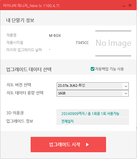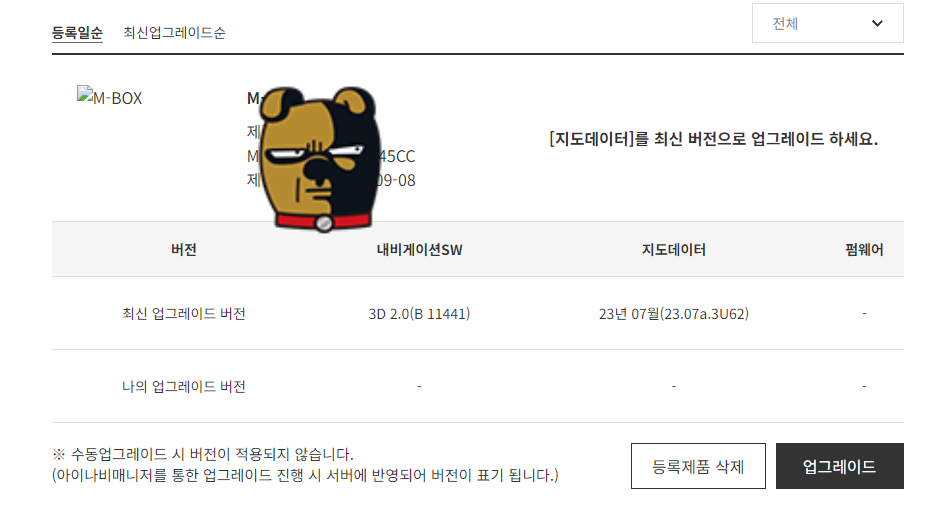 이제 본격적으로 업데이트를 해보겠습니다. 제품 등록 페이지에 있는 업그레이드 버튼을 선택하면, 내비게이션 업그레이드 페이지로 이동이 됩니다.