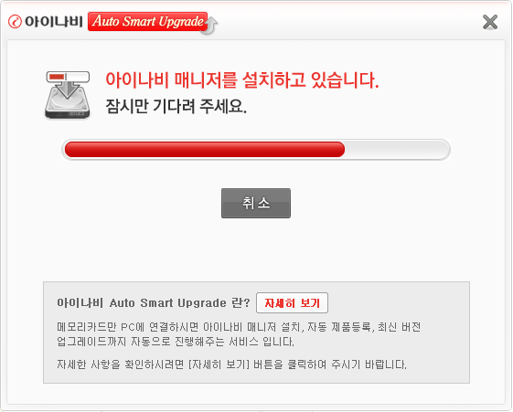 그러면 위와 같이 설치되고 있는 프로그레스바(Progress Bar)가 나오며 모두 설치하였다면, 자동으로 아이나비 매니저 프로그램이 실행 됩니다.