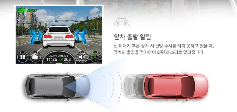 앞차가 출발 할때 딴짓하는 경우가 있으면 뒤에서 빵빵 거리잖아요. 이때 앞차 출발 알림 기능으로 정신을 차려주게 만듭니다. 게다가 전방 추돌 경보 기능과 차선이탈 경보도 해주기 때문에 혹시나 졸음이나 부주의 등으로 차선을 이탈하거나 추돌이 될 위험에 있을 때 알려줘서 고마운 것 같습니다.