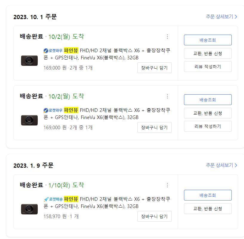 파인뷰 X6 2채널 블랙박스, 3대 구입 및 실사용 후기