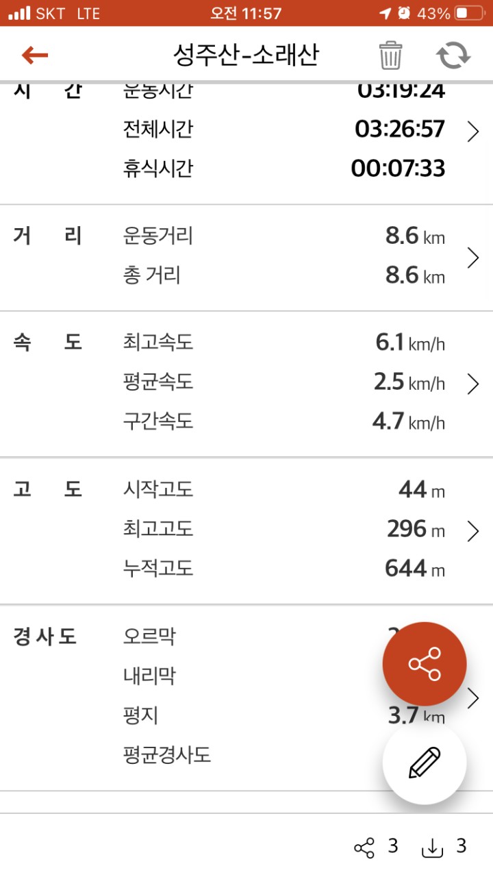 보다시피 약 3시간 정도에 8km 정도를 등산할 정도로 운동이 꽤나 된다. 다이어트를 위해 아침을 굶고 출발했었는데 소래산을 찍고 돌아오는 도중에 정말로 배고파서 힘들어 죽는 줄 알았다. 확실히 탄수화물이 없으면 정말 개고생을 한다는 것을 느꼈고 다음에는 바나나 정도는 챙겨와야 된다는 사실을 느낀 산행이었다.