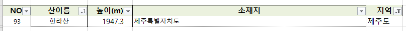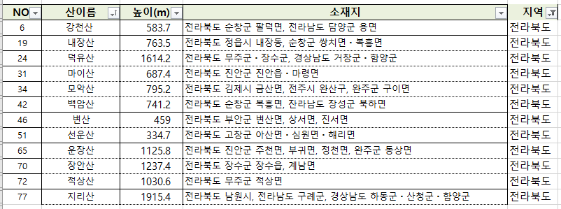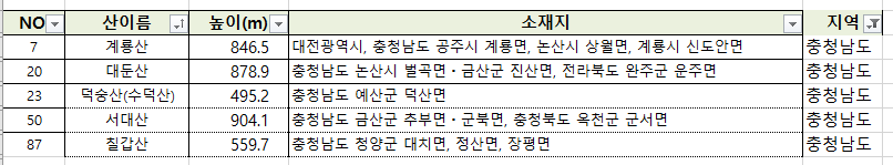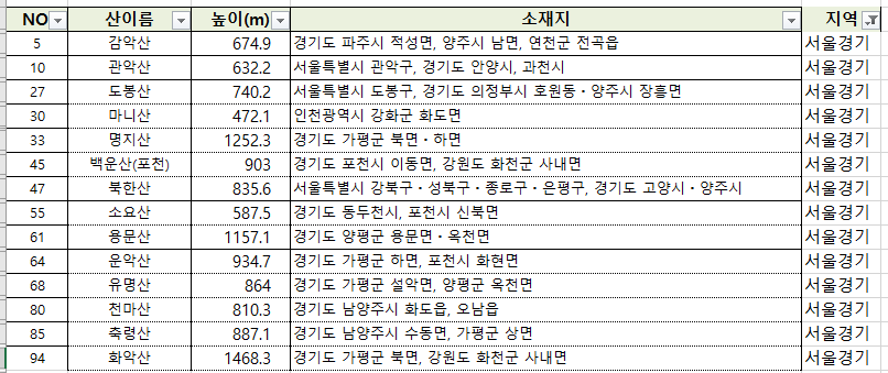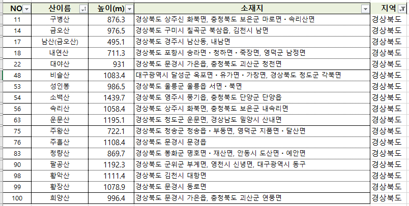 100대 명산 엑셀 및 선정 근거
