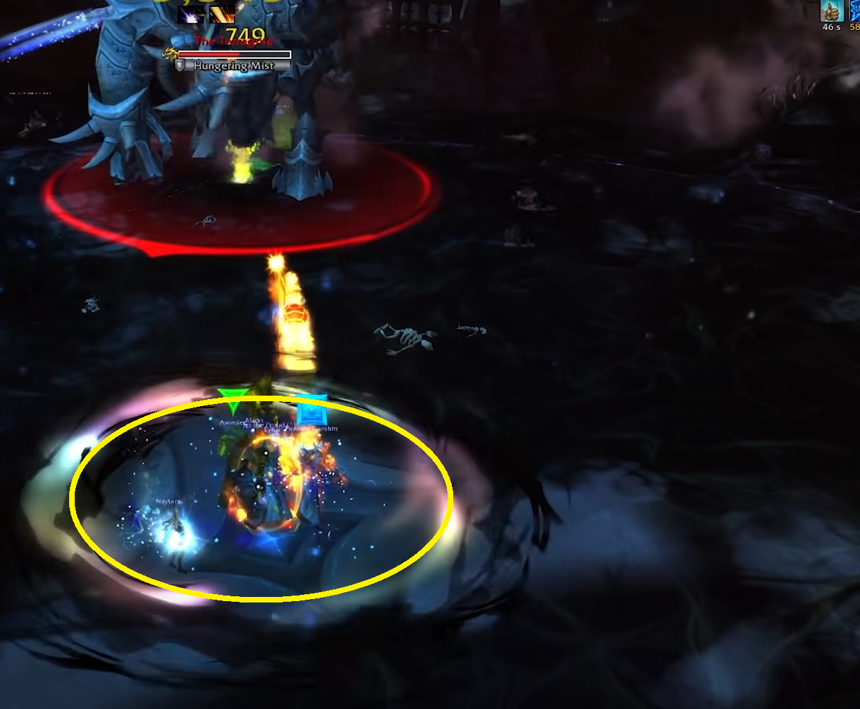 공격대는 일단 모두 맥동을 먹으며 변이를 먹은 유저들은 영웅 이상에서 발생하는 잊힌 고통의 잔재때 맞으러 갑니다. 그 외 지정된 곳으로 말뚝딜, 말뚝탱을 하며 교대를 합니다. 굶주림의 안개 시전 시 쇄포나 바질(바람질주 토템)을 써서 안전한 공간으로 무빙할 수 있도록 하며 무빙으로 정신이 없는 안개때 "재집"과 같은 즉시 공생기를 활용해서 생존을 돕도록 합니다.