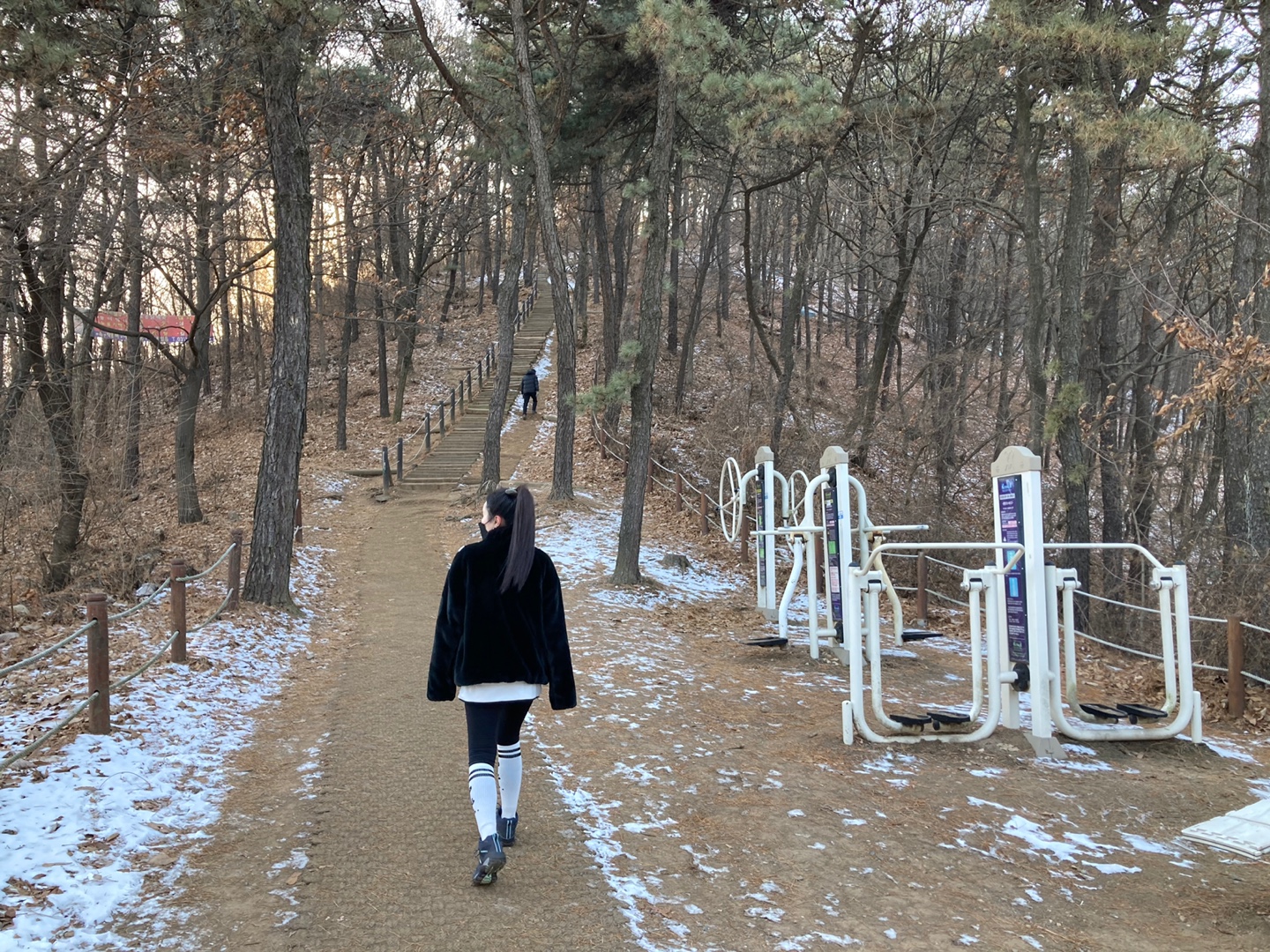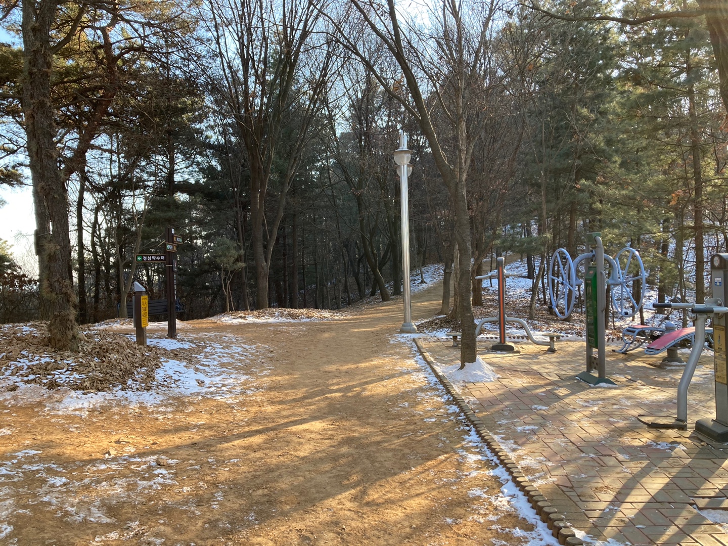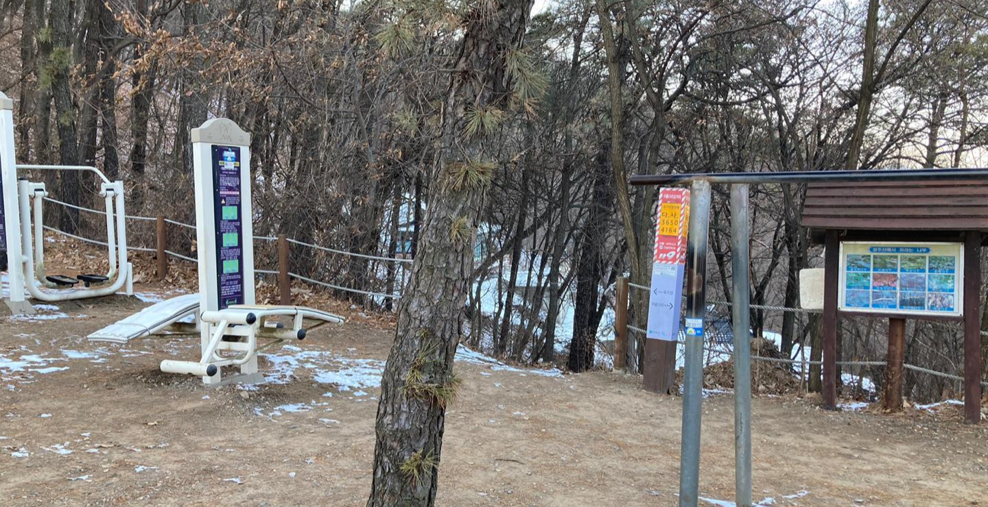 출렁다리를 다 건너면 역시나 운동기구들과 벤치가 등산객을 맞이한다.